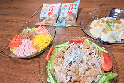 「かけ氷」は冷しゃぶや冷やし中華・冷やし水餃子などに味のついたかき氷をかけることで、冷たいままお肉が食べられる新感覚の調味料です。