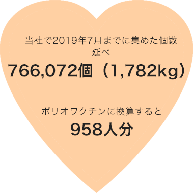 "世界の子供たちにワクチンを"と始まったエコキャップ運動当社でもこの主旨に賛同し、約8年前より、活動をはじめました。