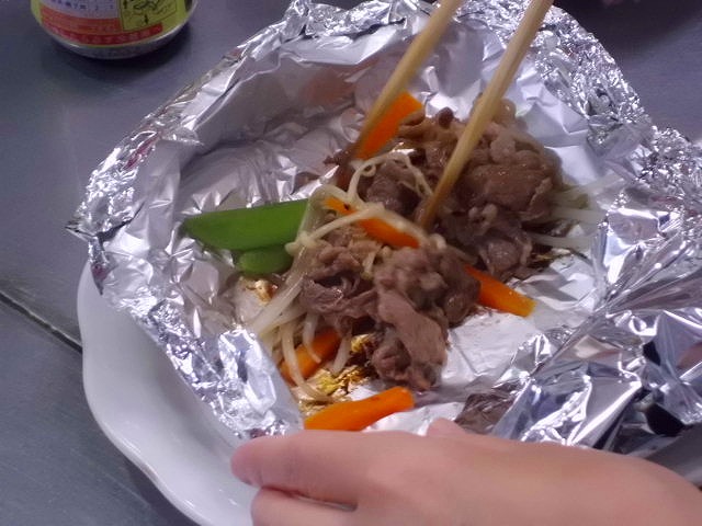 国産和牛切り落としを使った調理実習・試食