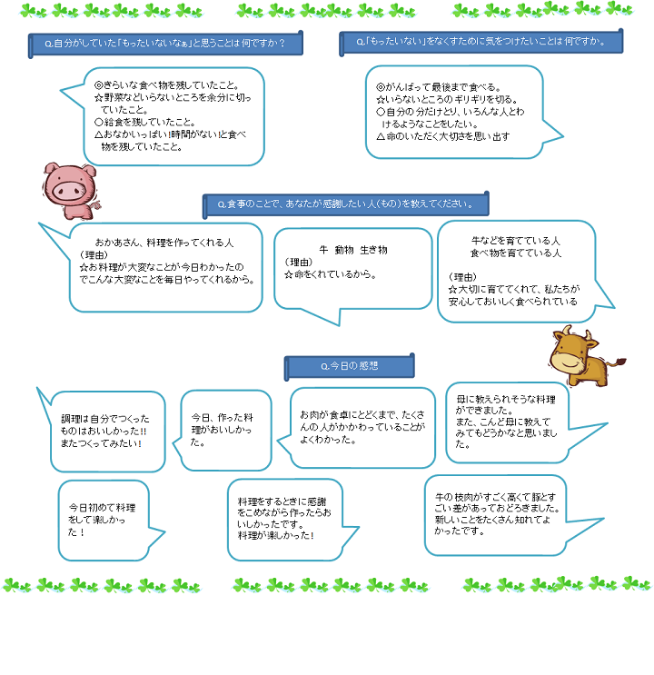 当社は「命をいただくことの大切さ」「もったいないの心を学ぼう」を大きなテーマとし、2日目の授業を担当しました。