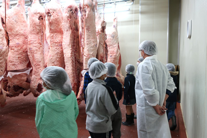 加工場、枝肉冷蔵庫見学、県産和牛、豚肉試食