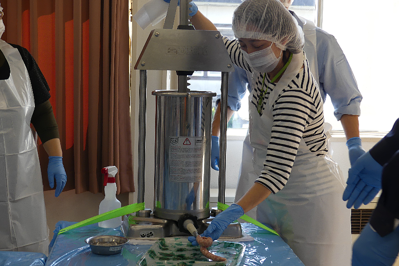 機械を使って肉を充填中![]() |