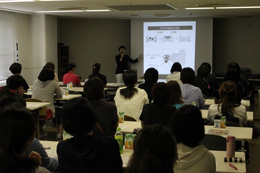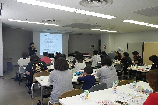 別室の会議室では、保護者を対象に、『トップアスリートから学ぶ勝負食~成長期だからこそ大切にしたい食事と栄養~』というテーマのもと、管理栄養士による「食育講座」を開催いたしました。