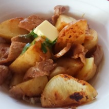 - じゃがバタ風ごろじゃがと味噌豚のバター焼き