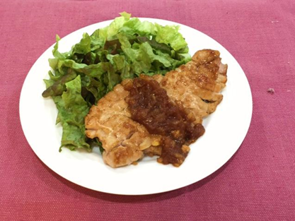 - すりおろした玉ねぎと調味料を混ぜ合わせたものを合わせて豚ロースに漬け込み30分おく