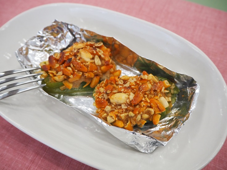 柿の種の食感が楽しい一品。香ばしい香りが食欲をそそります。