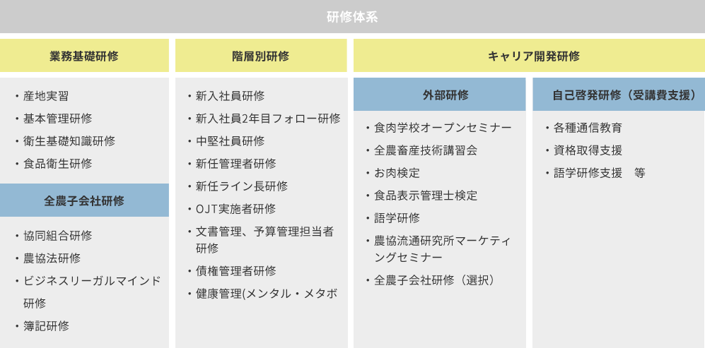 「業務系」「階層別」「キャリア開発」の3分類の研修が用意されています。